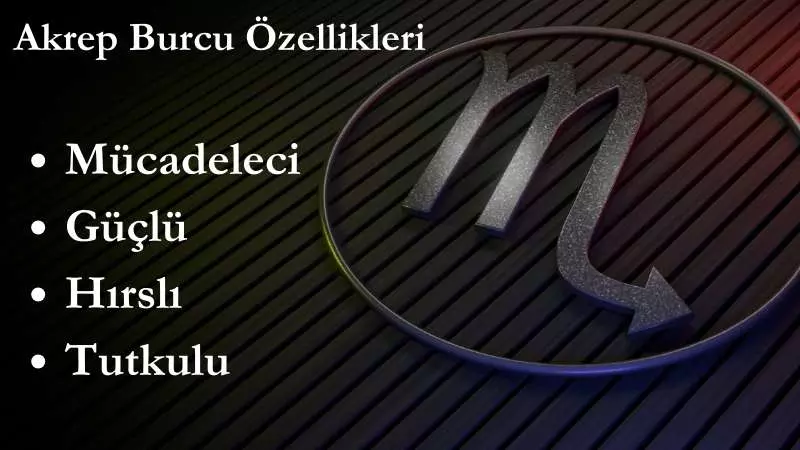 Akrep burcu özellikleri arasında hırslı, güçlü ve mücadeleci olması ön plana çıkar. En sakin akrep erkeği veya kadını için bile pes etmek diye bir şey yoktur. İşte şimdi pes etti dediğiniz an onun küllerinden yeniden doğduğunu görebilirsiniz. Bunun yanı sıra akrep burcu olanlar çok kaliteli insanlardır. Aynı zamanda güvenilir yapılarıyla dikkat çekerler.